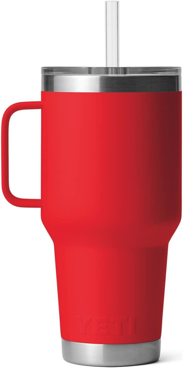 YETI Rambler 35 oz Straw Mug, Vacuum Insulated, Stainless Steel, Moon Dust(Rescue Red)