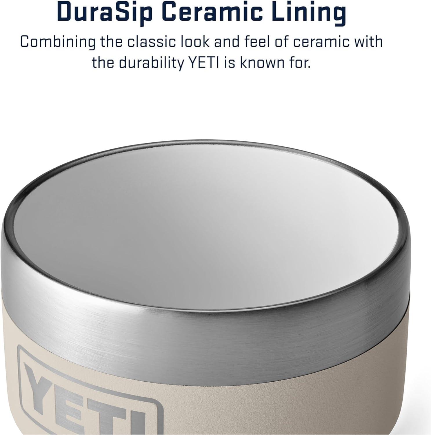DURASIP CERAMIC LINING – Combining the classic look and feel of ceramic with the durability YETI is known for, DuraSip Ceramic Lining is fused to 18/8 vacuum insulated stainless steel, making it tough enough to take tumbles and keep on sipping