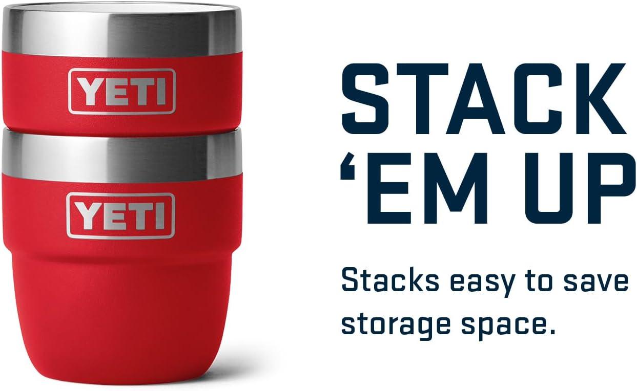 YETI Rambler 4 oz Stackable Cup, Stainless Steel, Vacuum Insulated Espresso/Coffee Cup, 2 Pack(Rescue Red)