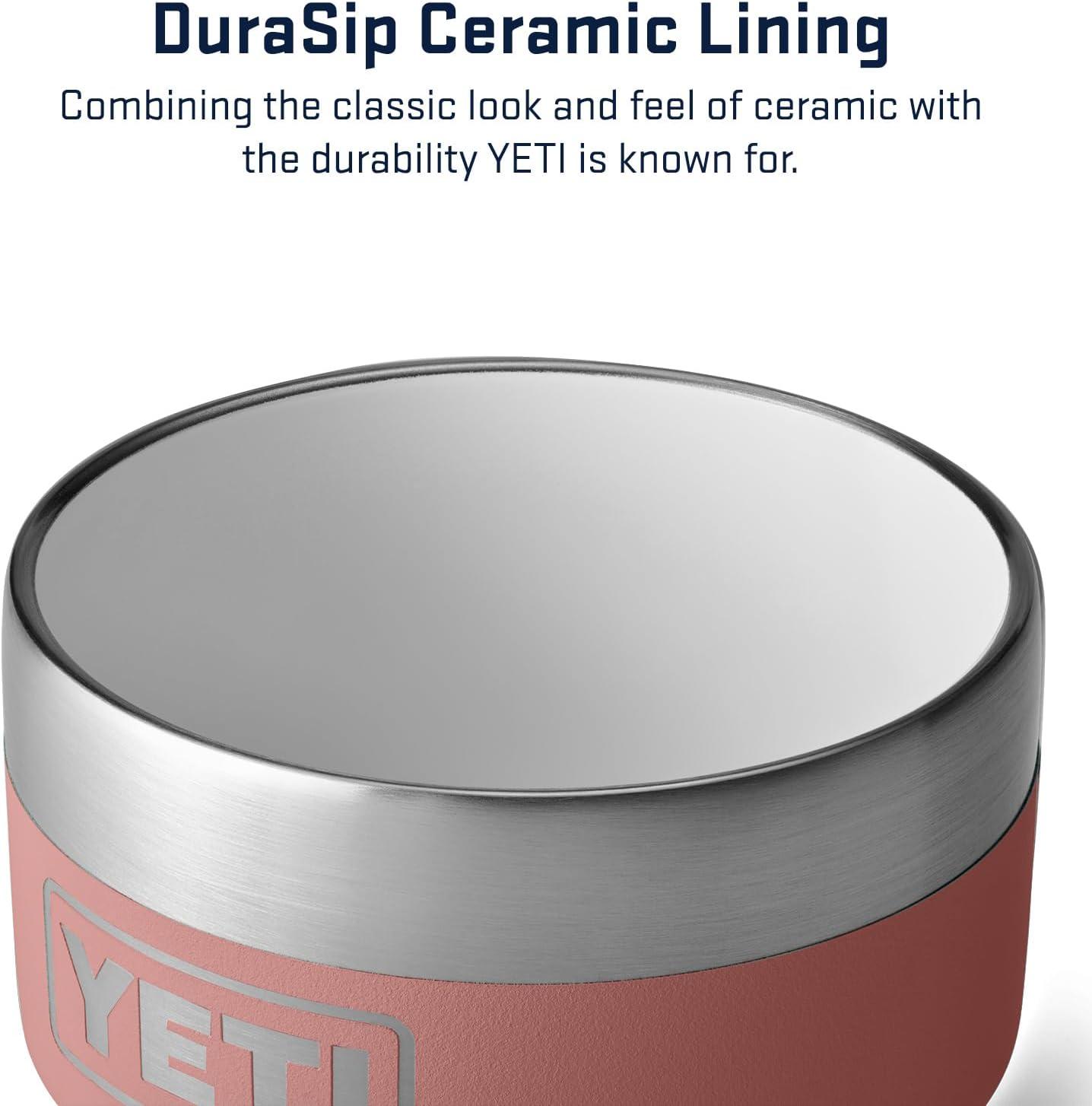 DURASIP CERAMIC LINING – Combining the classic look and feel of ceramic with the durability YETI is known for, DuraSip Ceramic Lining is fused to 18/8 vacuum insulated stainless steel, making it tough enough to take tumbles and keep on sipping