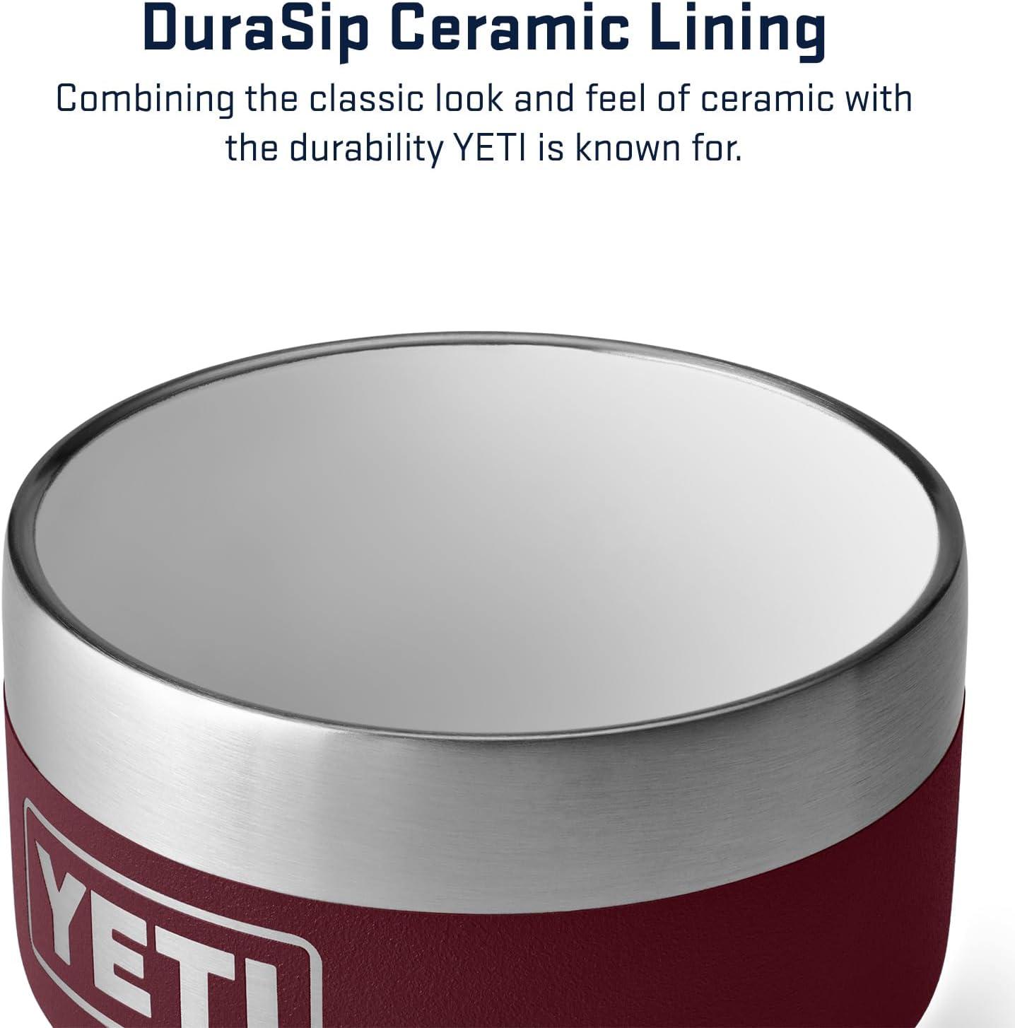 DURASIP CERAMIC LINING – Combining the classic look and feel of ceramic with the durability YETI is known for, DuraSip Ceramic Lining is fused to 18/8 vacuum insulated stainless steel, making it tough enough to take tumbles and keep on sipping