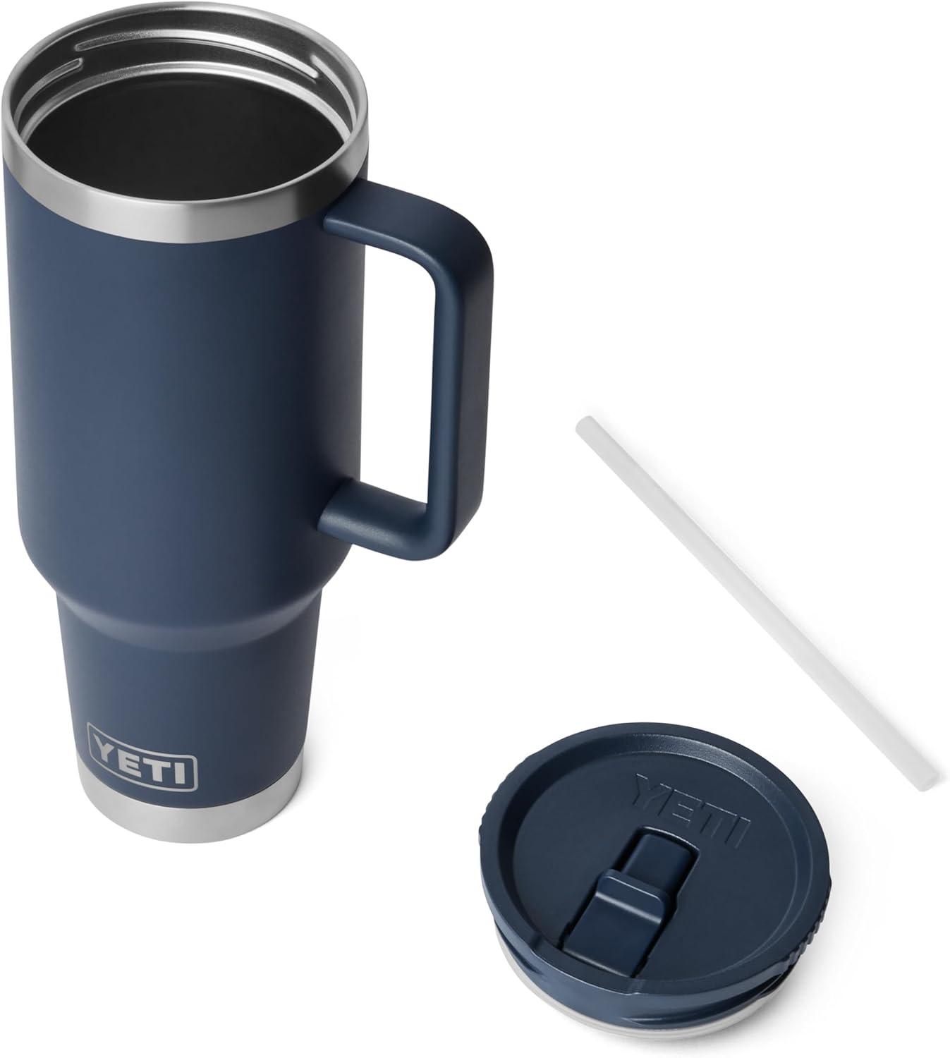 YETI Rambler 40 oz Travel Mug with Flip Straw Lid – Stainless Steel, Vacuum Insulated, Leakproof, Cup Holder Friendly(Navy)