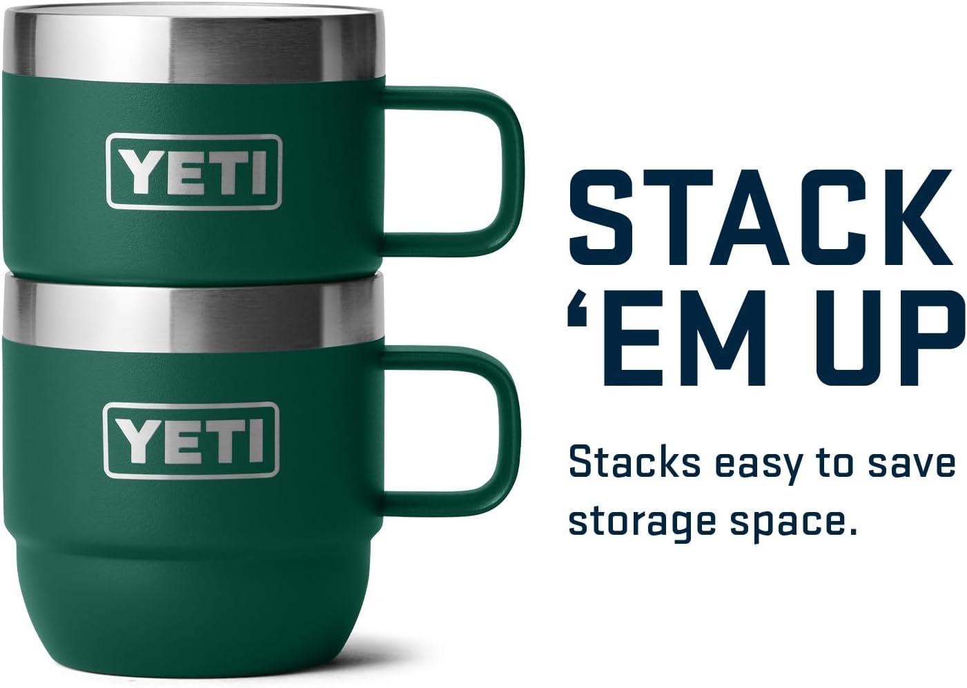 imageYETI Rambler 6 oz Stackable Mug Stainless Steel Vacuum Insulated EspressoCoffee Mug 2 PackBlack Forest Green