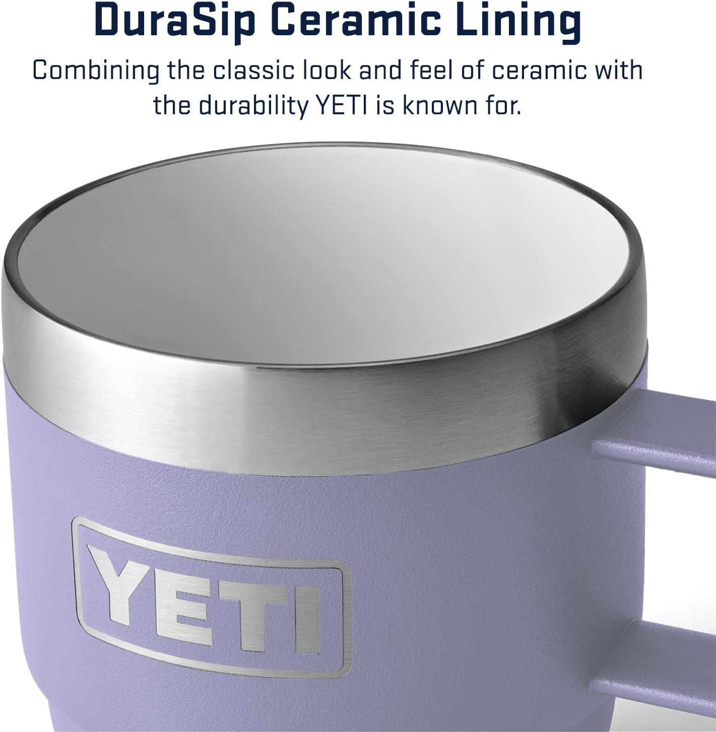 DURASIP CERAMIC LINING – Combining the classic look and feel of ceramic with the durability YETI is known for, DuraSip Ceramic Lining is fused to 18/8 vacuum insulated stainless steel, making it tough enough to take tumbles and keep on sipping
