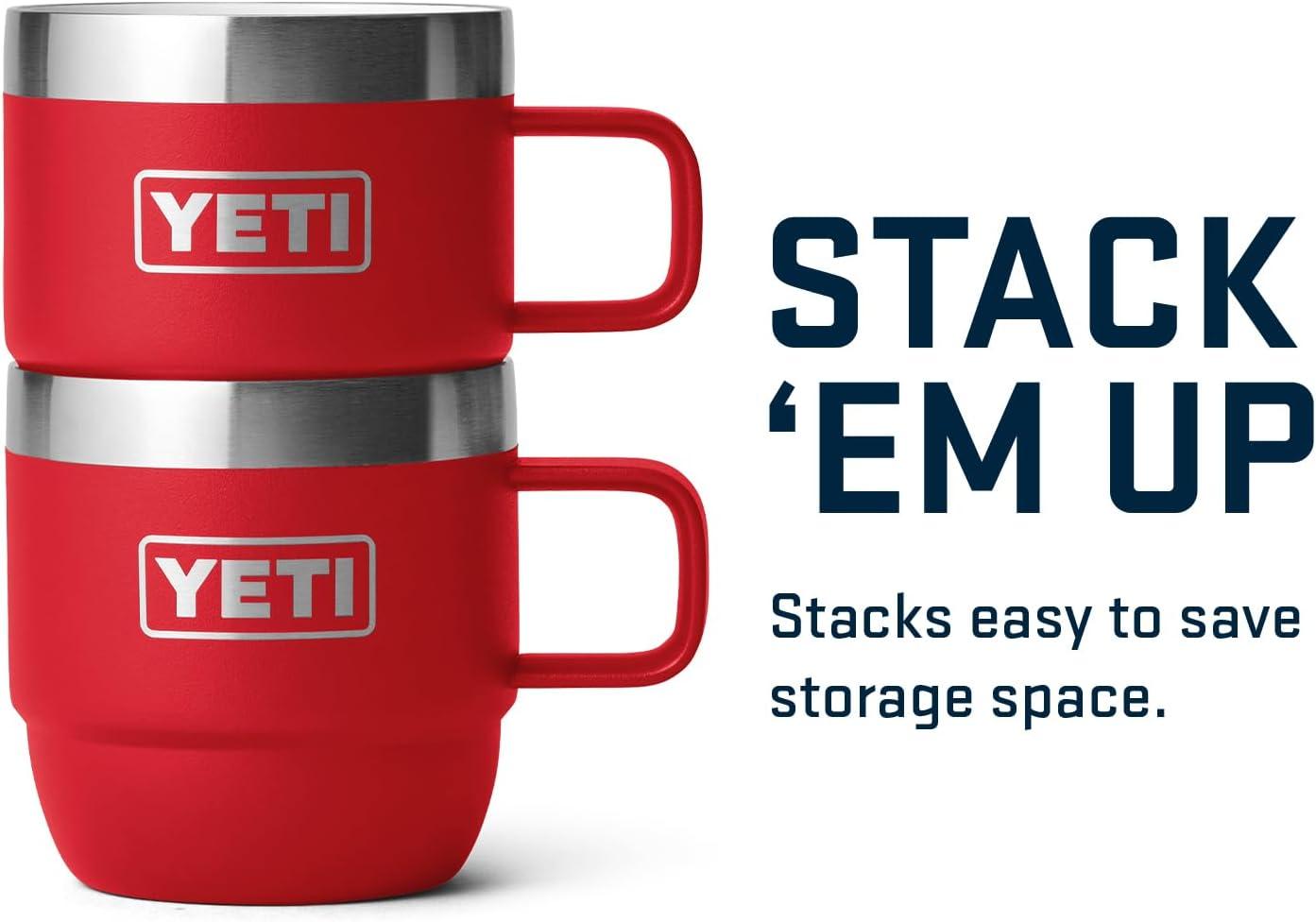 YETI Rambler 6 oz Stackable Mug, Stainless Steel, Vacuum Insulated Espresso/Coffee Mug, 2 Pack(Rescue Red)