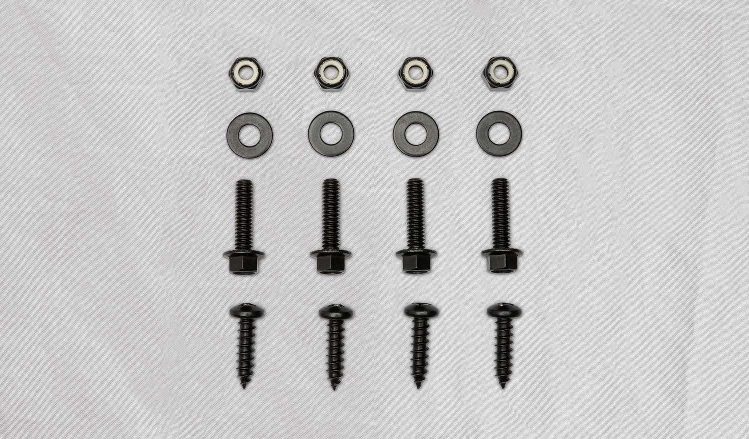 Includes the following hardware: wood screws, bolts, nyloc nuts, and washers