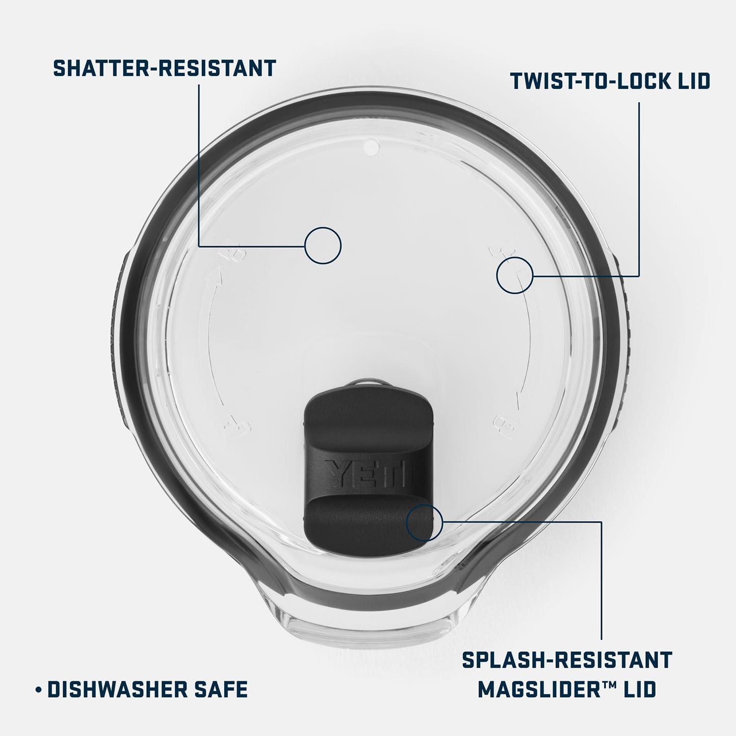 The MagSlider Lid is spill-resistant, shatter-resistant, and BPA-free. NOTE – DO NOT use the Rambler Twist to Lock MagSlider Lid to store boiling contents or with contents above 185°F (85°C)