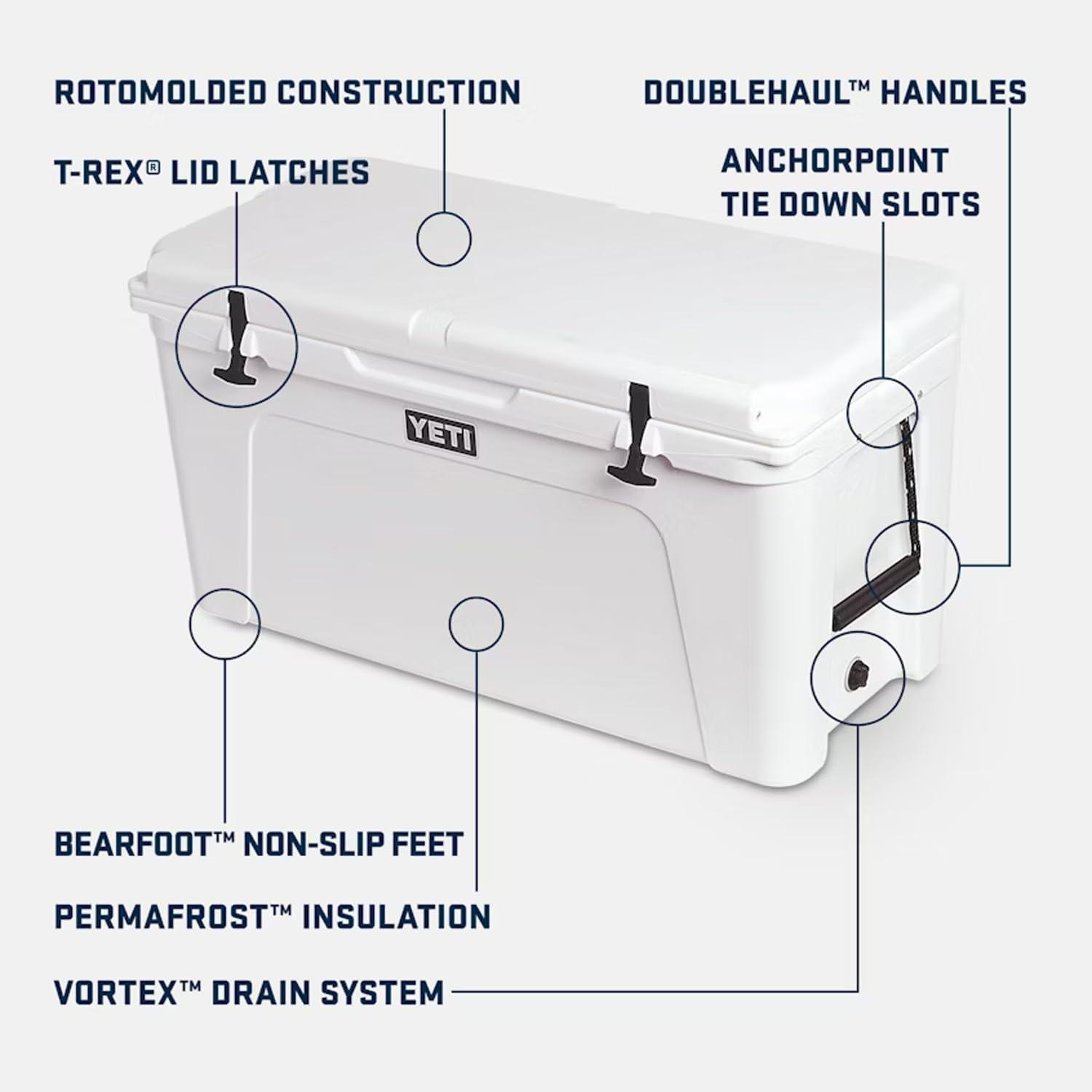All Tundra coolers feature T-Rex Lid Latches constructed of heavy-duty rubber so you’ll never see another busted latch and has patented keeper technology